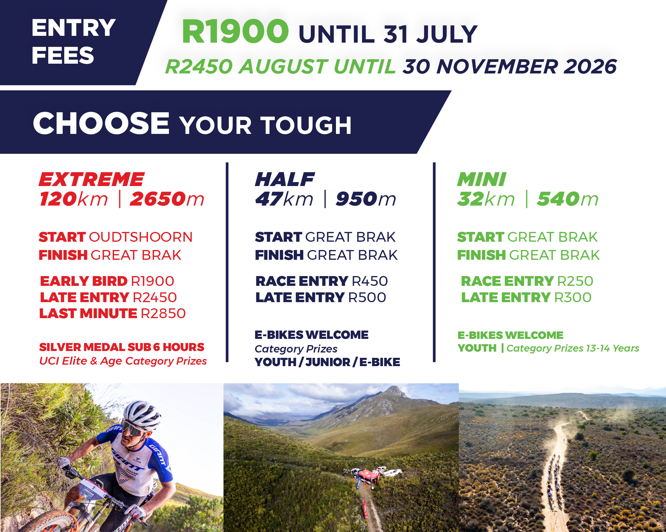 | 121km Attakwas Extreme | 121 km (Total ascent 2900m) | 06:30 | R 1,900.00 Early Bird |